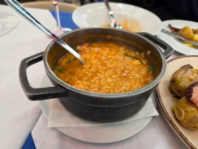 - Lagosta, 2 camarão tigre grelhados, arroz de coentros, molho à chef e molho rosa