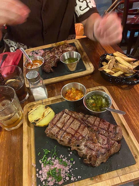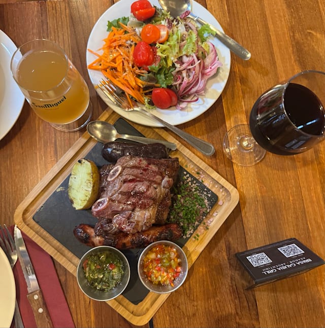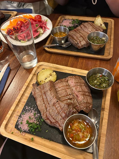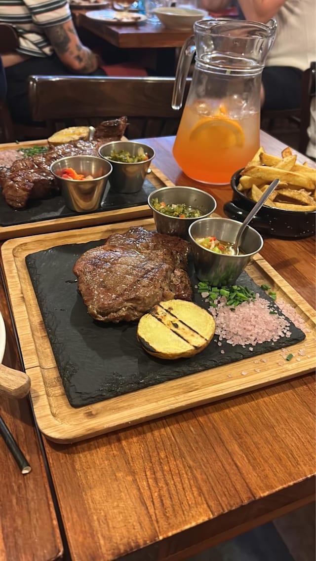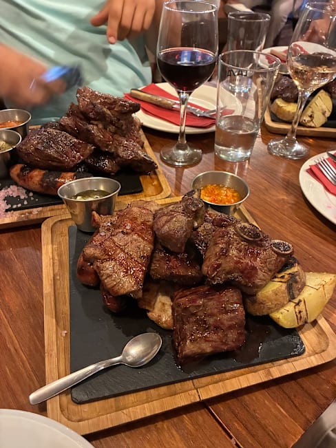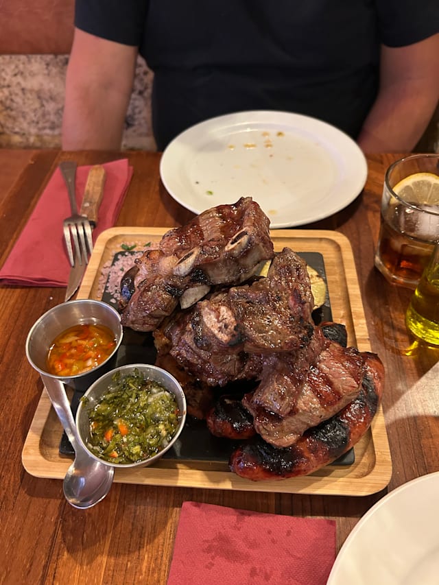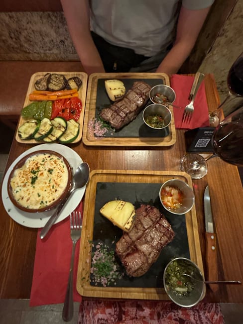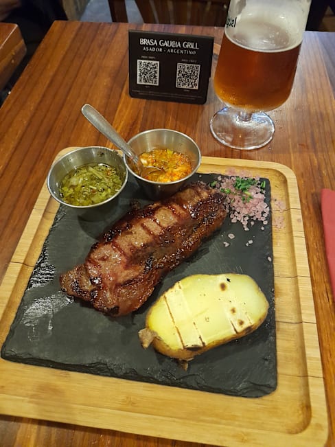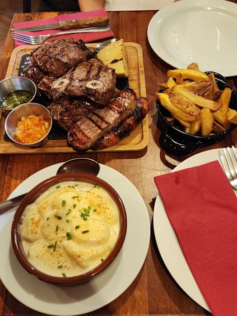 10/10We wanted to try an Argentinian steakhouse in Barcelone and were so happy with our choice of Brasa Gaucha ! The resto itself is quite small, but cozy. The table was already reserved for us upon arrival. The servers were the friendliest we've experience in all of Spain, truly. I believe their names were Carla and Bernadette, both of whom spoke excellent English. The resto was quite busy, but they handled it effortlessly and should be commended as such. The food itself was delicious, we ordered the classic grill for two, along with creamy potatoes as an accompaniment. They even kindly gave us a free portion of fries, but honestly the meat portions were already so generous we could barely finish everything. At the end of the meal, they even provided a limoncello digestif (so thoughtful). We will definitely be back for the lively atmosphere and delicious food !