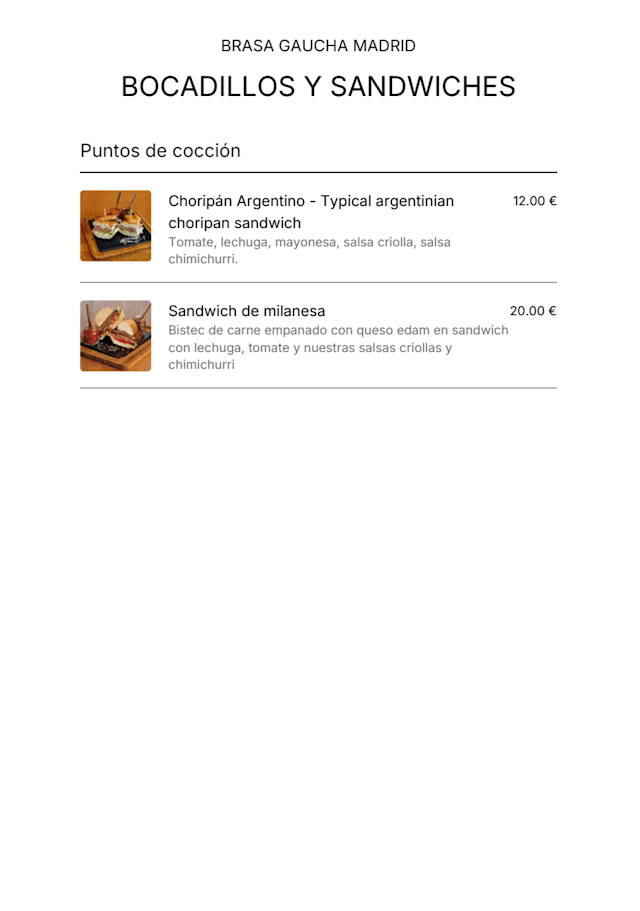 10/10Great option in the heart of Madrid. Perfect if wanting meat, potatoes +/- Veges. We ordered the 1kg meat plate between two of us and it was more than enough food! Great service. No complaints from our end!