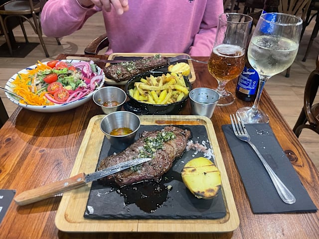 9/10Very friendly and attentive staff. The ribeye was perfect and exactly as we ordered. The steak tartare was good, though a bit too many capers, which overpowered the flavor. Delicious fries and red cabbage salad, along with a bottle of wine. All in all, a great lunch for a Sunday afternoon.