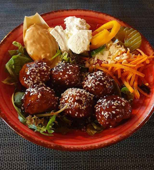 - Gemengde salade, spek, cheddarkaas en huisgemaakte mayo