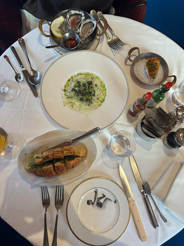 4/10Service was poor, food arrived undercooked (pink chicken) I had to return - they took an age to recook until a fresh plate arrived without an apology some 15 minutes later. Drinks arrived with sticky residue spilt down the side. I had to clean my own glass. Coffee arrived in a dirty cup. Starter’s were tasty though. On the face of it a cool place but not worth the price tag.