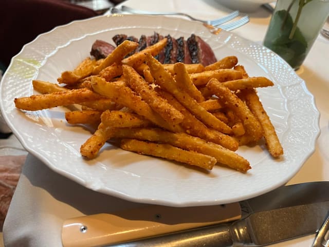 9.5/10Our main server and the staff were fantastic! The RibEye steak was cooked to perfection! The table side Caesar salad was amazing, the flambée dessert excellent. I definitely recommend this place!!!! Two minor things we didnt like, no bottled water/sparkling and the blue carpet