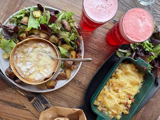 Carte "fait maison" à partir de produits frais, grande sélection de bières pression, vins et spiritueux.