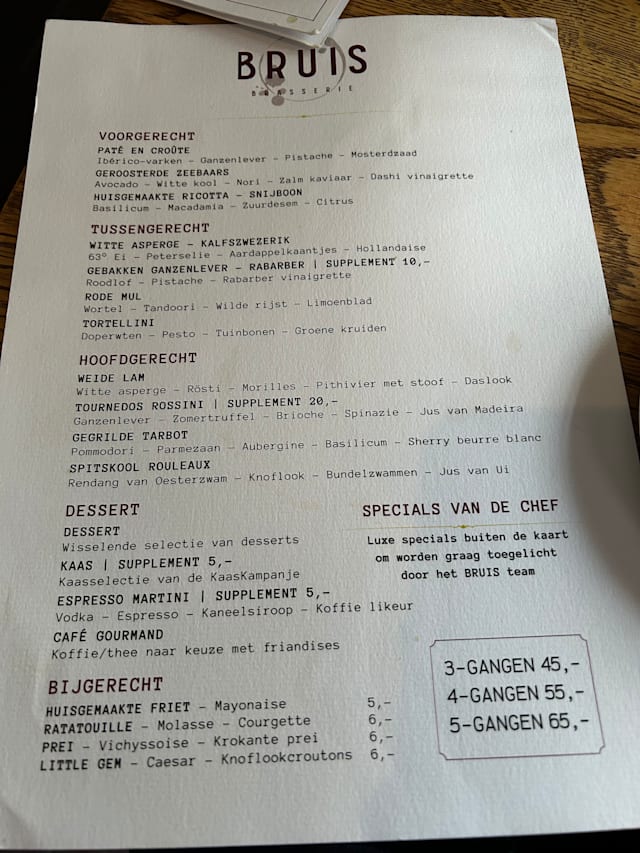 Bruis is een nieuwe, bruisende en verfrissende brasserie gevestigd in het centrum van Haarlem vlakbij de Grote Markt. Wij verwennen onze gasten met overheerlijke gerechten. Van geweldige bijpassende wijnen en uiteraard de beste service en aandacht die bij een bruisende ervaring horen. Met de combina...