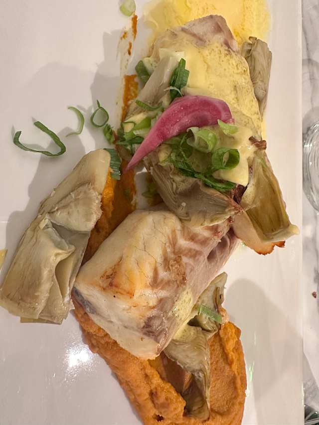 - Artichaut poivrade et mousseline de carottes caramélisées