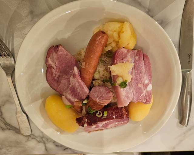 - Saucisse de Vienne, Lard fumé et salé, échine fumée, saucisse fumée, pommes vapeur
