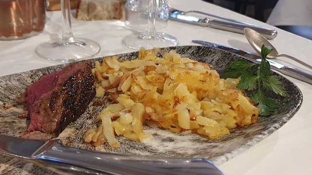 - (Coupé au couteau servi avec toasts, beurre et pommes frites)