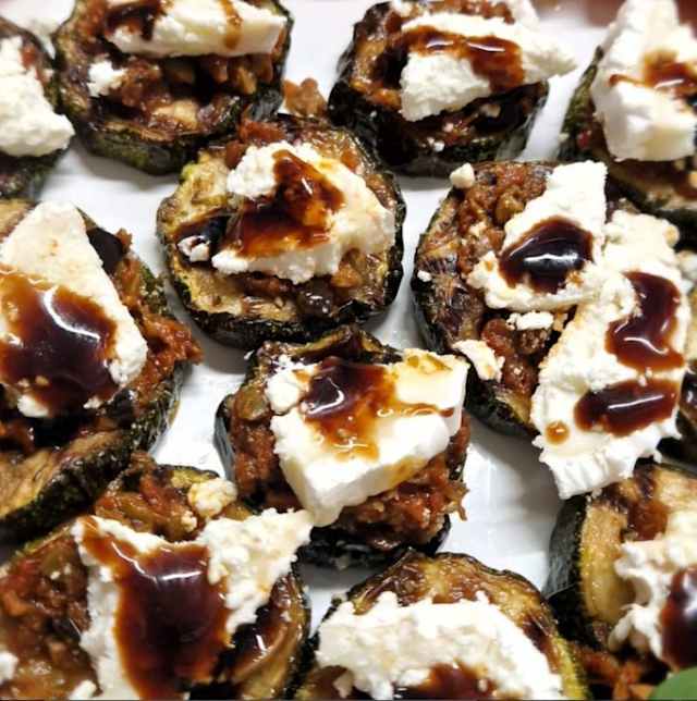 - Met peertjes, honing, walnoten, kruidendressing en balsamicostroop.