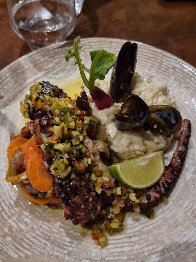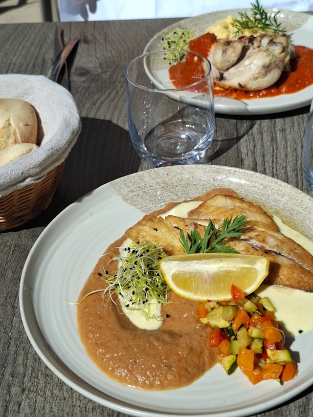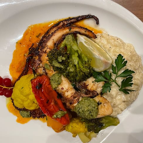 8.5/10The staff were really friendly and set up a table for us on the terrace as the weather was so nice. The food was very tasty though the carbs they served alongside the main courses (a creamy risotto) didn't always complement the dish as well as it could.