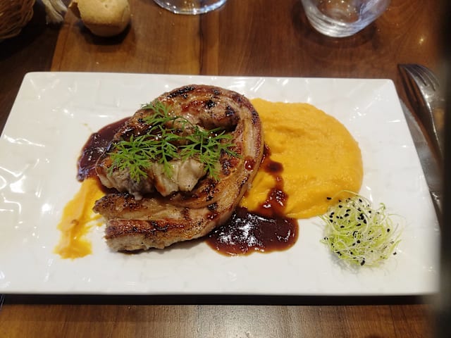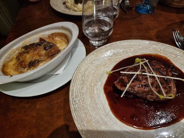 9.5/10Excellent food, great presentation, very attentive and amiable personnel. Possibly one of the best filet we‘ve ever had. The meat preparation with a special oven and concurrent cooking technique is game-chaniging. This place needs to be visited at all costs during a stay in the city of Grenoble. — Two minor things though: The ambient music and lighting concept could be improved. There were upbeat pop tunes by early evening followed by no music at all. A constant vocal jazz/r&b music would suit that place a lot more. Also, the lamp above our table was switched off (as it was with all the others in that row). Instead they had the ceiling lights on, which resulted in no direct light on the table but rather created a bit of a „we’re-closing-soon“ atmosphere. Both points of criticism may have had temporary reasons and only occured that evening due to technical difficulties or similar. However, we thought it is helpful to point them out. And just to be clear: This is a 9/10 place, hands-down. We will be back for sure.