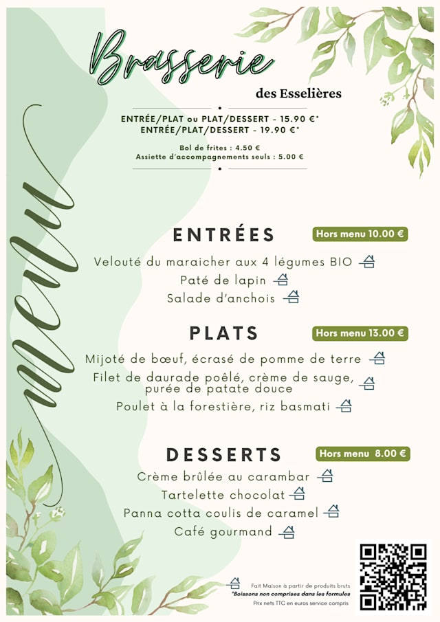BRASSERIE – La carte typée brasserie propose une jolie sélection de recette...
