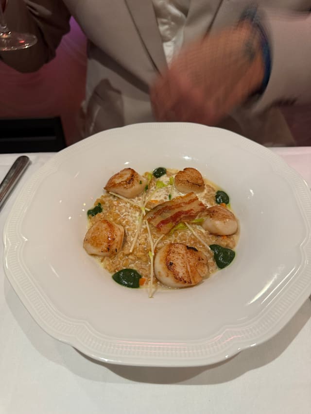 Dear Mrs Frith, thank you so much for your kind words about our service, we’re delighted to hear you found the team attentive, pleasant, and communicative. We’re also happy you enjoyed the food, and we’ll certainly take your feedback about portion sizes into account. We’re truly sorry to hear that the atmosphere was disturbed by other guests on their phones. We understand how this can affect the overall dining experience and will consider ways to encourage a more mindful environment in the future. We hope to welcome you back soon for an even more enjoyable visit! Sibyl Lesade, coordinatrice F&B