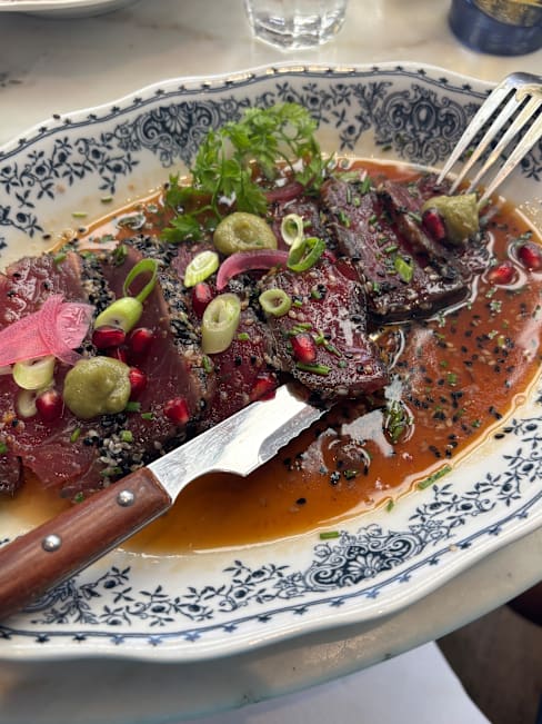 10/10Lovely food- delicious entree - tuna tataki followed by plats which were lamb shank & cordon bleu for us. House wine is pretty good by our palate.