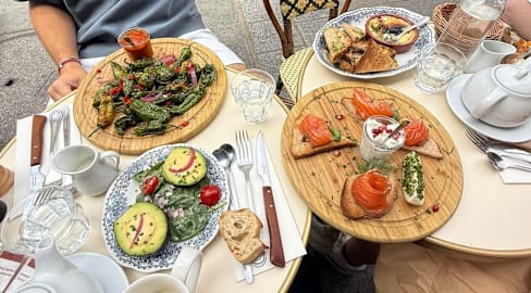 10/10Excelent brasserie in Le Marais.With terrace and large room Inside too to choose. Home made food with large varieties salad, meat, fishes and starters. We shared humus with oiled toasted bread, saumon tartar with avocate and tuna tataki (Excellent by the Way), with frites as side dish. Several BEERS and Coffee. 35/40€ per person. Great Good and very Good and fast Service. Reserve to asure your table, this is Paris!