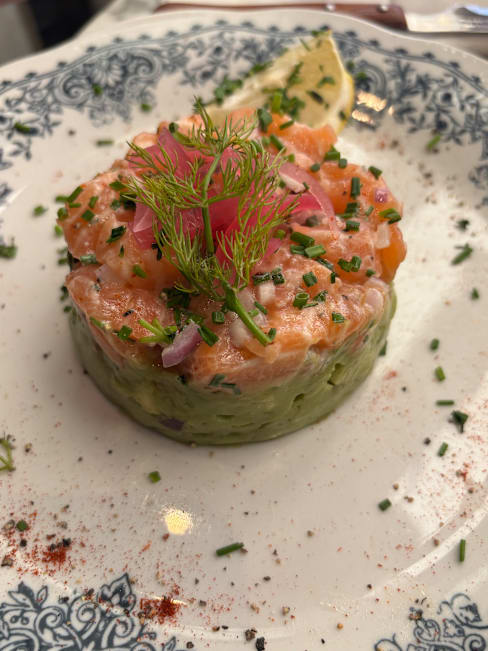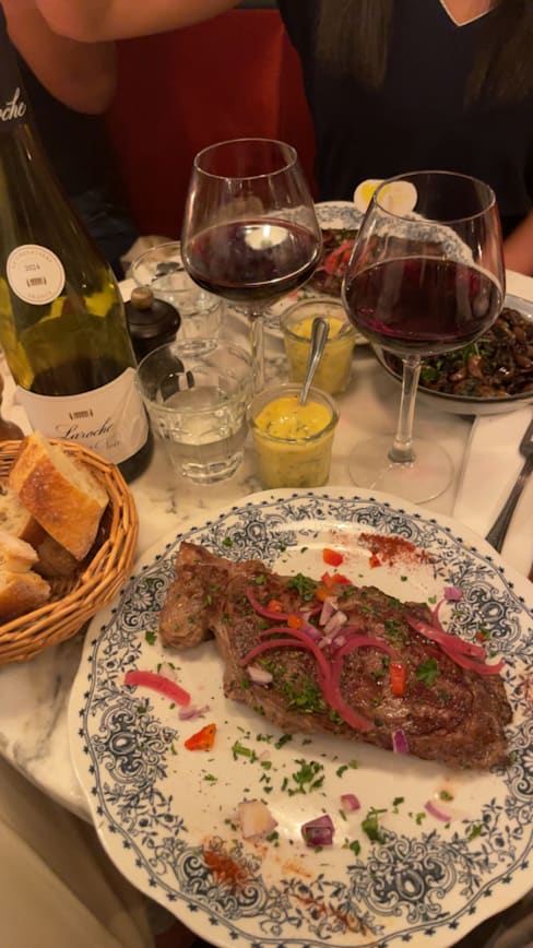 8/10We went late on a Sunday night. Had the soupe a l’onion et l’os a moelle to start. Those two were very good but we have had better. Then we had l’entrecôte béarnaise. It was an excellent clean cut and very flavorful. Recommended. We ended with the tarte Tatin which they serve with Greek yogurt - that’s different. OK but not the best Tatin either. Service was good and the restaurant is charming. Overall a nice experience. But not wowed!