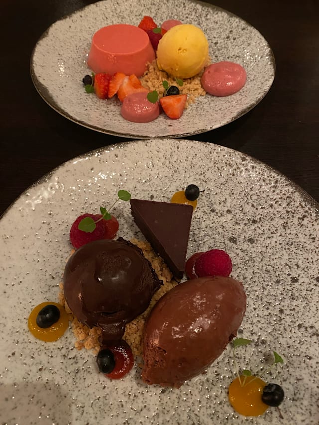 10/10Delicious food. We took 3 different plates, the duck, the corn chicken and the steak. All 3 were excellent. Desserts were also very good !