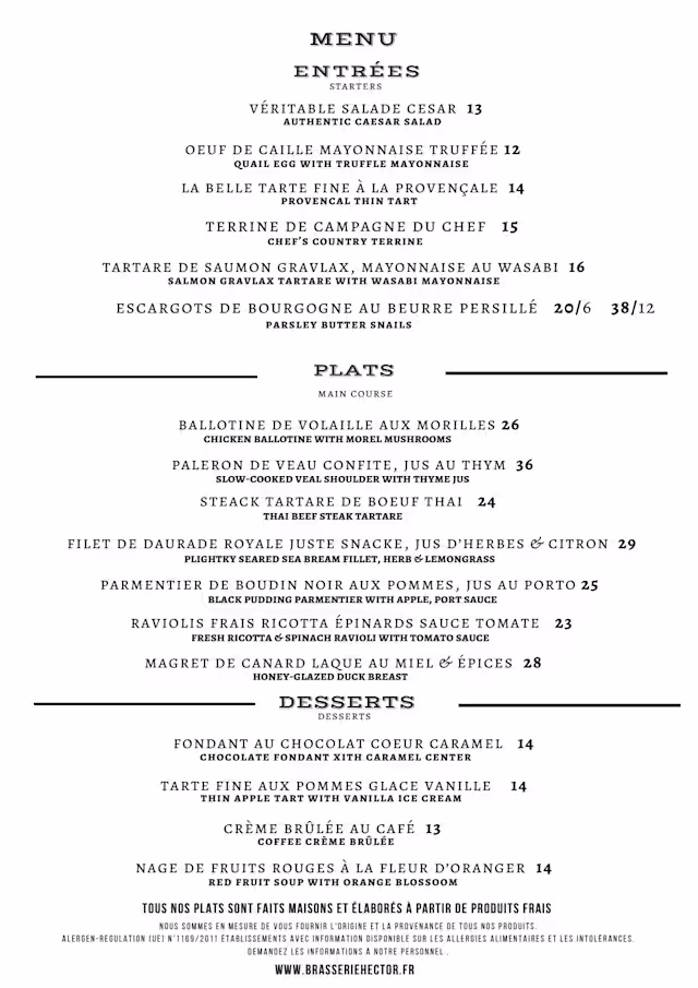 +4Today is our first night arriving in Paris from London, and we are truly delighted to enjoy such delicious food at Brasserie Hector. The cuisine here is far superior to that of restaurants of the same level in the UK. Simply put, the dishes in this restaurant are of outstanding quality, leaving us with a wonderful impression of our first day in Paris.