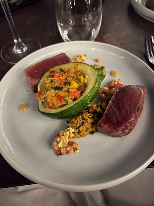 5/10Dinner on Easter Sunday was a Chaotic Disaster. There was so much yelling and noise coming from the kitchen, it was very anxiety producing. There was something wrong back there. It took 2 hours to get our meal, and my Kofta were still raw inside. I was afraid to eat them. Some tables still didn’t have food after 2 hours. The wait staff were running around in a panic. It took 45 minutes to flag someone down and get a glass of wine. I think the front of the house and hotel managers were working in the kitchen too. The rest of our stay was fantastic. I would recommend the hotel and Alycone but not this restaurant.