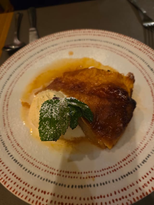 Amuse bouche + croquette de crevettes + sole “meunière” + dessert du jour