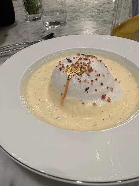 6.5/10Typical of restaurants and eateries attached to hotels or in alliance with hotels, this did not ignite my flame. Food quality was not bad but neither was it too-notch. It caters predominantly to the crowd that is influenced by brand rather than by performance. The prices are sky high and the service is average. Lots of firm but not as much substance. I ordered oysters on the half shell and escargots. I have experienced much better in many places at half the price. So if you want to see and be seen, you can give it a try. I certainly don’t intend to return. The only thing that stood out was the dessert: île flottante. Top notch.