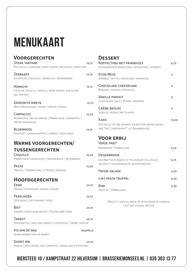 Toen wij op de Kampstraat/Biersteeg kwamen, wisten wij het meteen: DIT IS HET! Hier kunnen wij onze passie en expertise kwijt. Het opzetten van een te gekke, mooie Brasserie. Waar mooi, puur gekookt wordt, de lekkerste wijnen worden geserveerd en waarmee wij jullie een hele mooie culinaire ervaring...