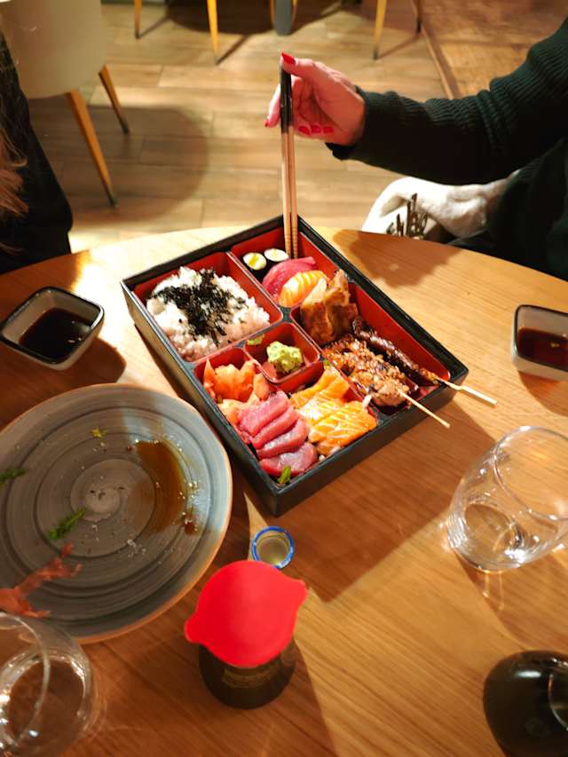 - MAGURO NO TATAKI (200g de filet thon mi-cuit servi avec un riz nature et ses légumes croquants)