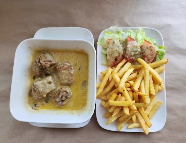 - Beuf, maroilles, sauce, crudités