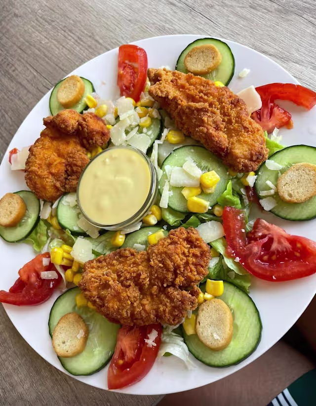 - Poulet, cheddar, sauce, crudités