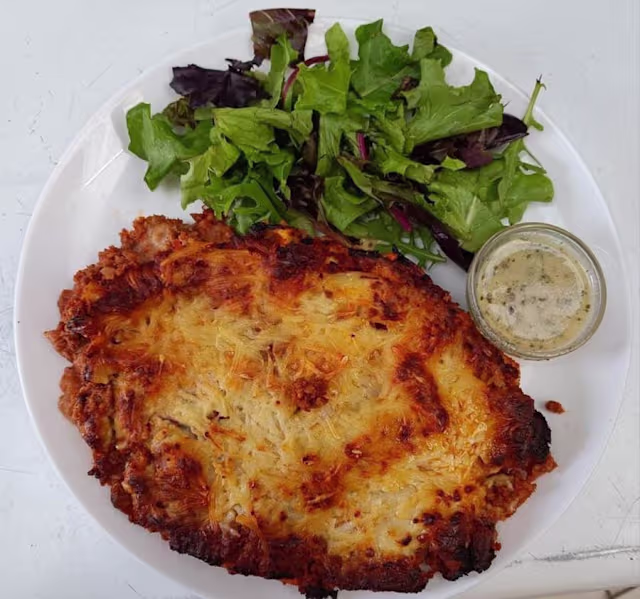 - Poisson, cheddar, sauce, crudités