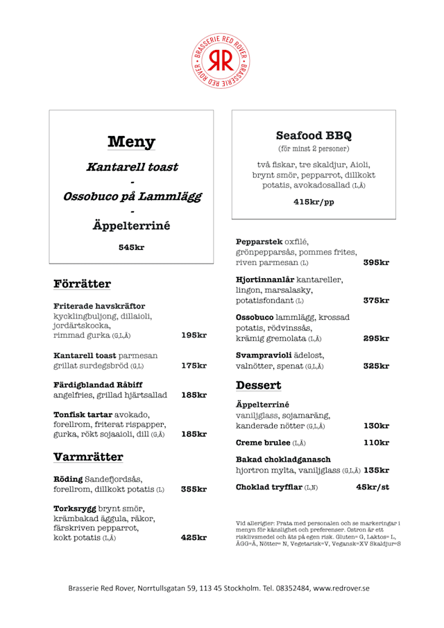10/10We were looking for a restaurant in walking distance of our hotel Best Western Time, and Red Rover's menu appealed to us. Really nice staff and a good vibe - food was excellent. We were a party of 8 and all of us left full and pleased. Will visit again if we come back to Stockholm in the future.