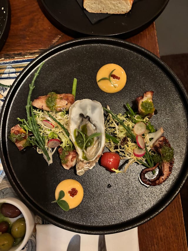 9.5/10Food and wine were great, our waitress was cheerful and efficient. The restaurant is not big and some big groups were so loud we could barely chat among ourselves.