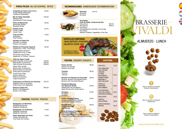 9/10Booked a table based after online reviews as our first time in Moraira. Was a little apprehensive after walking past 3-4 quite full restauants to find Brasserie Vivaldi circa 25% full. Menu wasn't the most extensive but also not lacking in choice. However, the service was good (no frills but efficient) and we couldn't fault the food we ordered (we had eaten in 2-3 good (and expensive) restaurants in Ibiza and Formentera the previous week) so we have a reasonable appreciation for food. My wife wasn't drinking wine due to taking antibiotics so I only had wine by the glass and realising when paying the bill the wine was only 3.50 euros a glass, it was faultless (for me anyway).