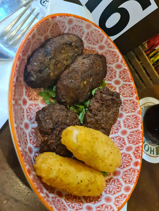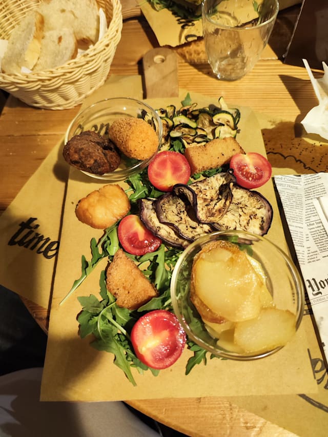 It wasn’t a good experience, the first dish polpette de Malanzana and meat, where the meat wasn’t cooked properly. The second dish, just simple chicken breast has been delivered cold on the table and the waffle as well. After we reported to the waiter, the cook pass throw us on a bad mood, the dish come back still not properly done and no flavor at all. The waiter service and the the location atmosfera was good, the only thing that bother us was the cigarette smell from the staffs that was smoking outside that was possibile to feel on our table.