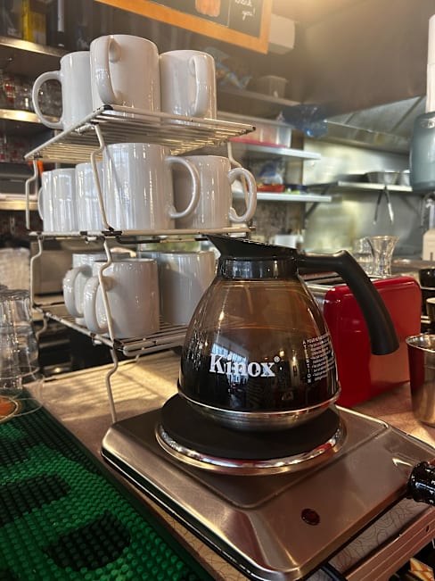 9.5/10bilingual team and coffee refills ! Ideal for a fuzzy morning