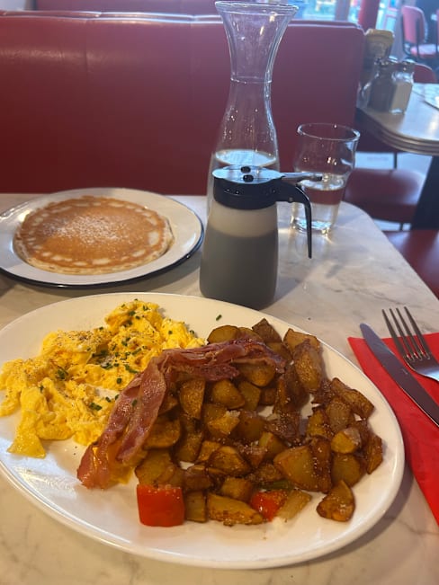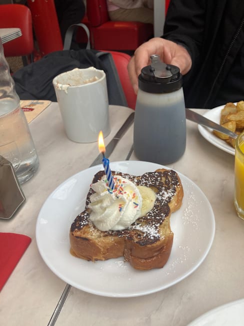 9.5/10I read reviews about this restaurant online before coming to Paris. At the end of our second week in Paris, we were hankering for a solid American breakfast as we are early risers and had been walking 8-10 miles a day touring. Not a lot available in cafes for this type of food early in the morning so we reserved a spot at opening time and weren’t disappointed. Delicious eggs Benedict, pain Perdue, bacon, eggs sunny side and potatoes. It was my husbands birthday, and his pain Perdue arrived with whipped cream and a candle! Hit the spot, give it a try!
