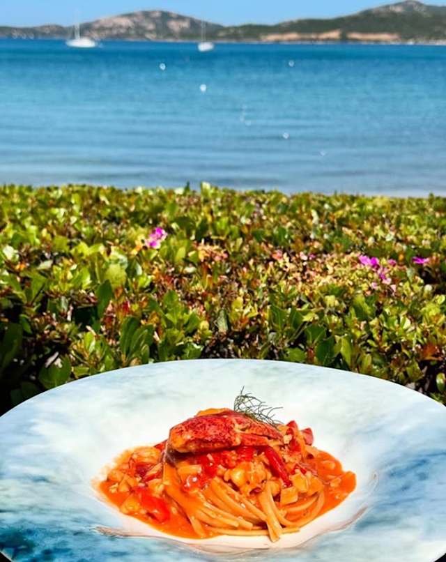 - Spaghetti, cherry tomatoes, red prawn tartare, chopped pistachio