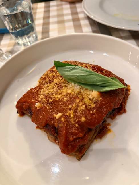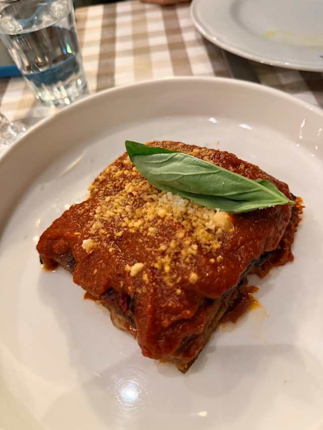 6.5/10Good welcome, nice ambience, first red flag: no Campari, but plenty of Apero. Menu fairly basic, but that's OK if it's exceptional. Stuffed courgette flowers were mostly undercooked batter, though the stuffing was tasty. Melanzane Parmigiana was good, ravioli was OK, meatballs were good. Wine that you can get in the supermarket for €5 was overpriced at €22, but drinkable. I think the reviews I read led me to expect something exceptional and it was pretty good but I wouldn't go out of my way again to eat there. We booked for 1.30 and they wanted us out by 3.00 so we didn't bother with pudding or digestif. Maybe allow people a couple of hours minimum for lunch?