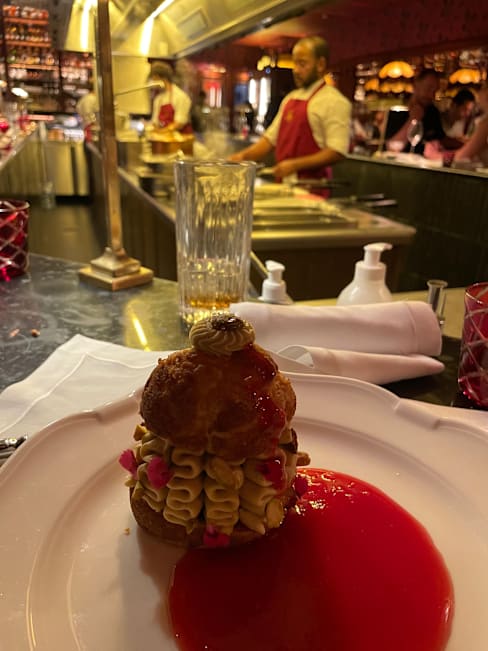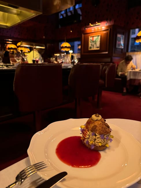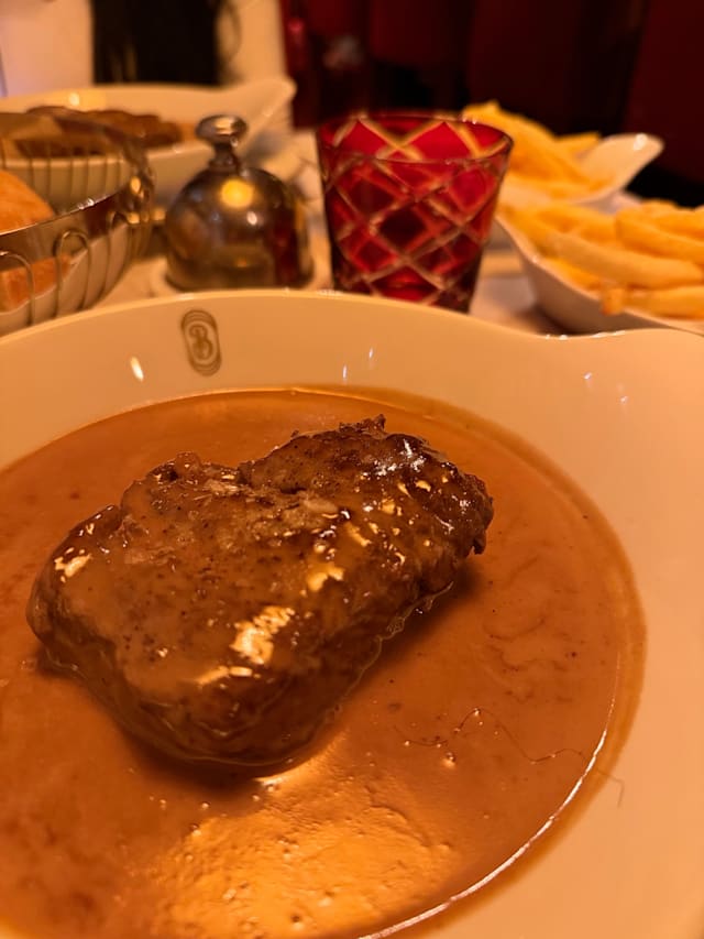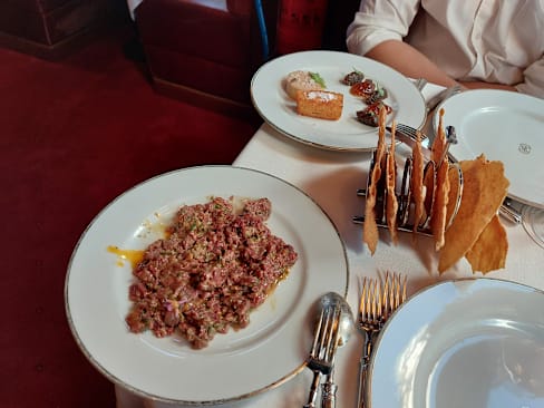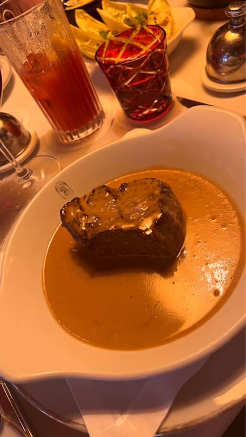 8.5/10Very expensive for what it is. The steak is little and with not enough sauce, the fries were mid raw and oily. Dosages are very tiny (the cosmopolitan is so small…). The steak is not amazing, it’s just normal. The space itself is very pretty but very small. We sat near a window with very poor isolation and when a couple was with their moto on near the window our spot just started to smell so bad of gasoline. Overall paid 60€/pp and not impressed
