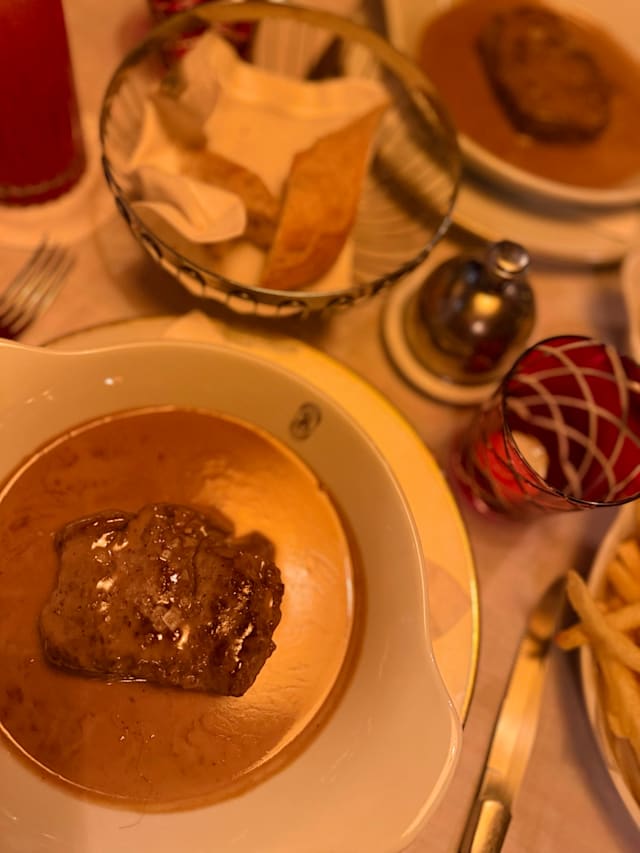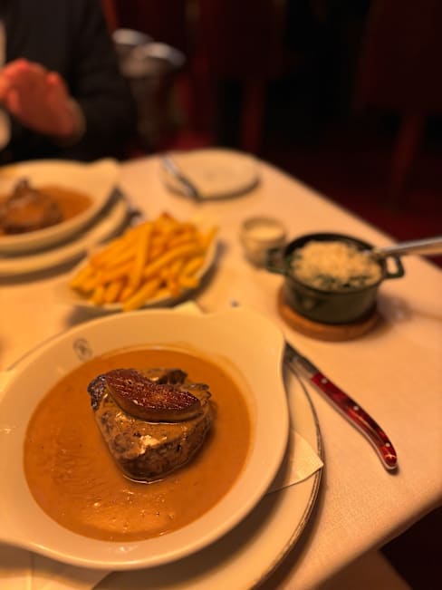 9/10Food is really good, but the 55€ per person is not worth it just for a steak, a side of French fries, a Coca-Cola ans a coffee