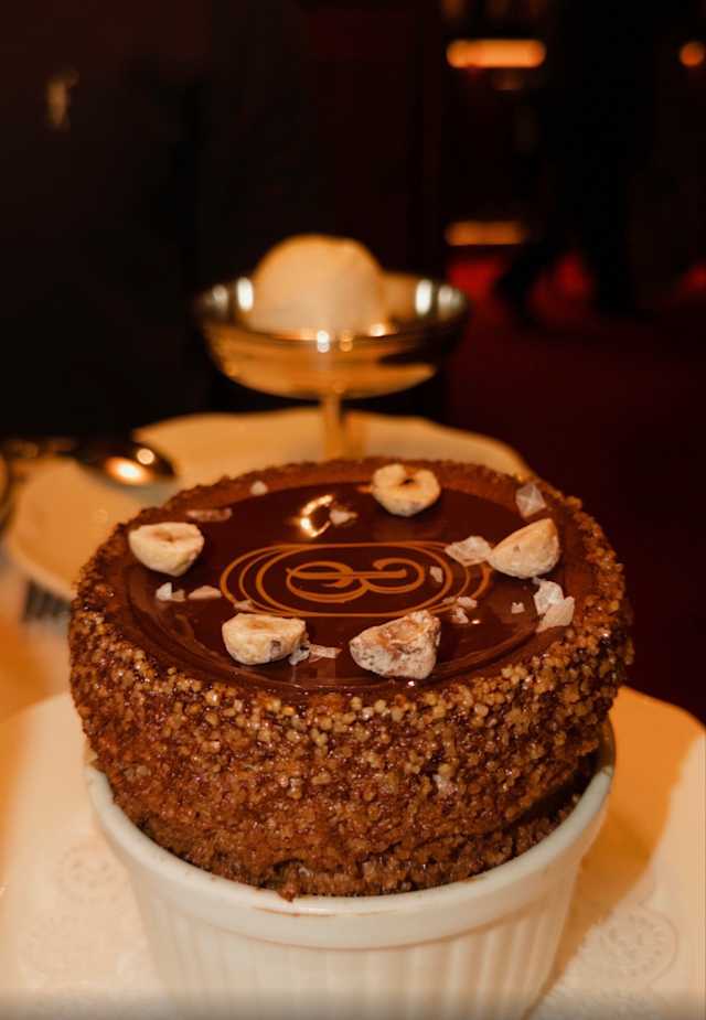 10/10+4The food, the ambiance and especially the service staff make this place special. Please know the entire kitchen is within a large oval dining bar, though there are beautiful banquets for flanking it. The house filet mignon is the star, but the menu has a great deal more to offer. This is all topped by impeccable cocktails and delicious desserts. The staff is knowledgeable and kind.