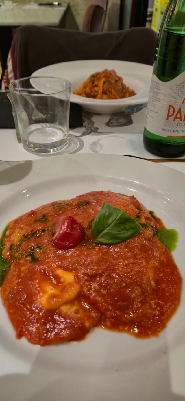 Pomodoro san marzano, melanzane, pecorino, parmigiano e basilico