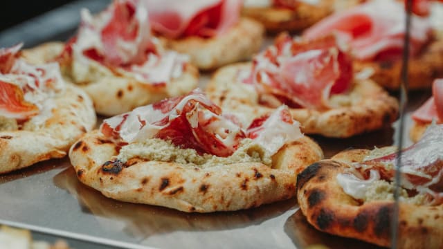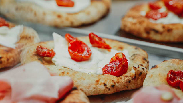 Pomodoro, crudo di parma, olive taggiasche, funghi, carciofini sott’olio e ovo sodo