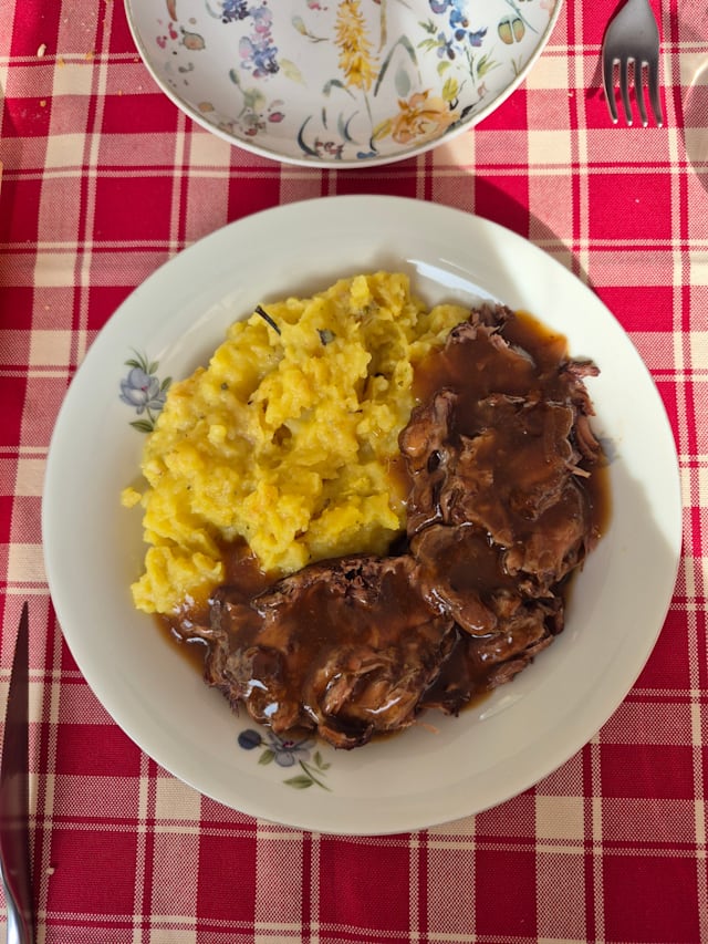 Guancia *di vitello brasata all’arneis con crema di patate arrosto