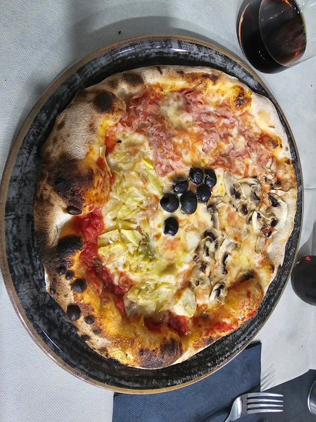 - Fior di latte, pomodoro, funghi, olive, carciofi, prosciutto cotto