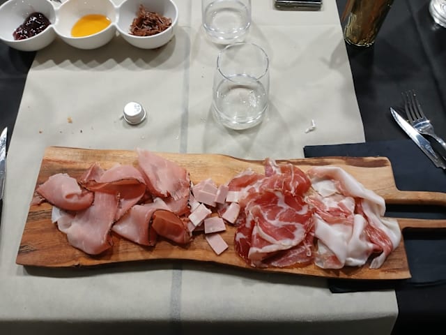 - 1 Patata toast, salsiccia di maialino nero, scamorza affumicata