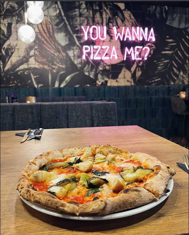 - Pompoencrème, salsiccia, gekarameliseerde uien, mozzarella, basilicum, parmezaan