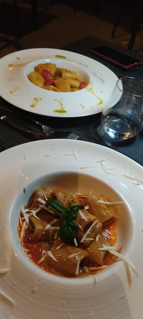 7/10Amoung 4 dishes only one was really good. Pasta with pumpkin, sausages and mushrooms and another one with pistachio and shrimps were just usual, can't even say that tasty - pretty plain taste of mushrooms in first one and strong shrimp flavour in second, so other ingredients were just lost. Fish antipasti was strange, like fish cutlet (even with couple of small soft bones), bean puree also was lost in this fish background. The desert was ok, actually nothing special, just good quality lava cake, by the way I didn't understand why lava cake is called "warm pudding" in the menu. The service was good, though we were informed that gnocchi are not available after we already ordered it.