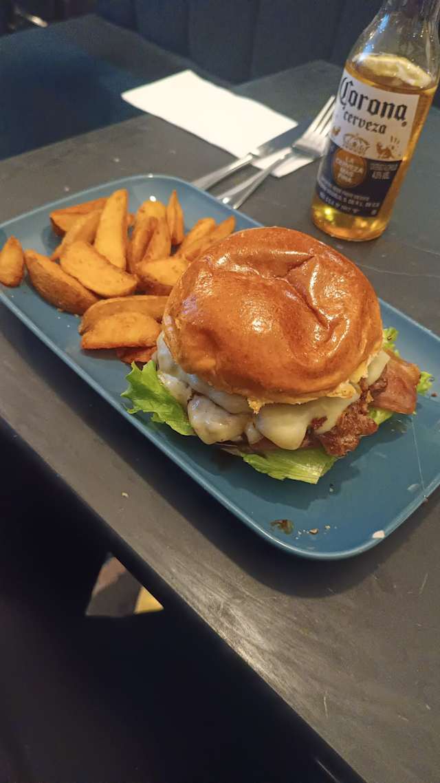 Disfruta de nuestra especialidad de la casa, doble smash burger de 160gr acompañado de un cremoso queso crema, cebolla roja, bacon crujiente, salsa BBQ. pan brioche acompañada de patatas, ¡repetirás!