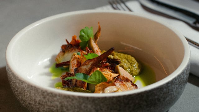 10/10All I can say is wow! Came here for lunch after finding it in the Michelin guide, not yet rated but the write up seemed perfect for us. Firstly the service was 10/10 from both the wait staff. Baptiste (I hope that's how his name is spelt) even went out of his way to suggest some sights and restaurants in his home town were were planning on visiting the following week. Great drink recommendations too. The food was exceptional. 11/10. We had the 5 course lunch, which was extremely good value for what we got. The dishes were very creative, beautiful and most importantly very delicious. Perfectly balanced flavours and textures, ticking every box imaginable, so well done to the talented kitchen and head chef. We also enjoyed the music in the background...cool tunes, perfect volume. Really nice venue to spend a couple hours. It's only a matter of time before this place has some Michelin stars against its name. Go here.